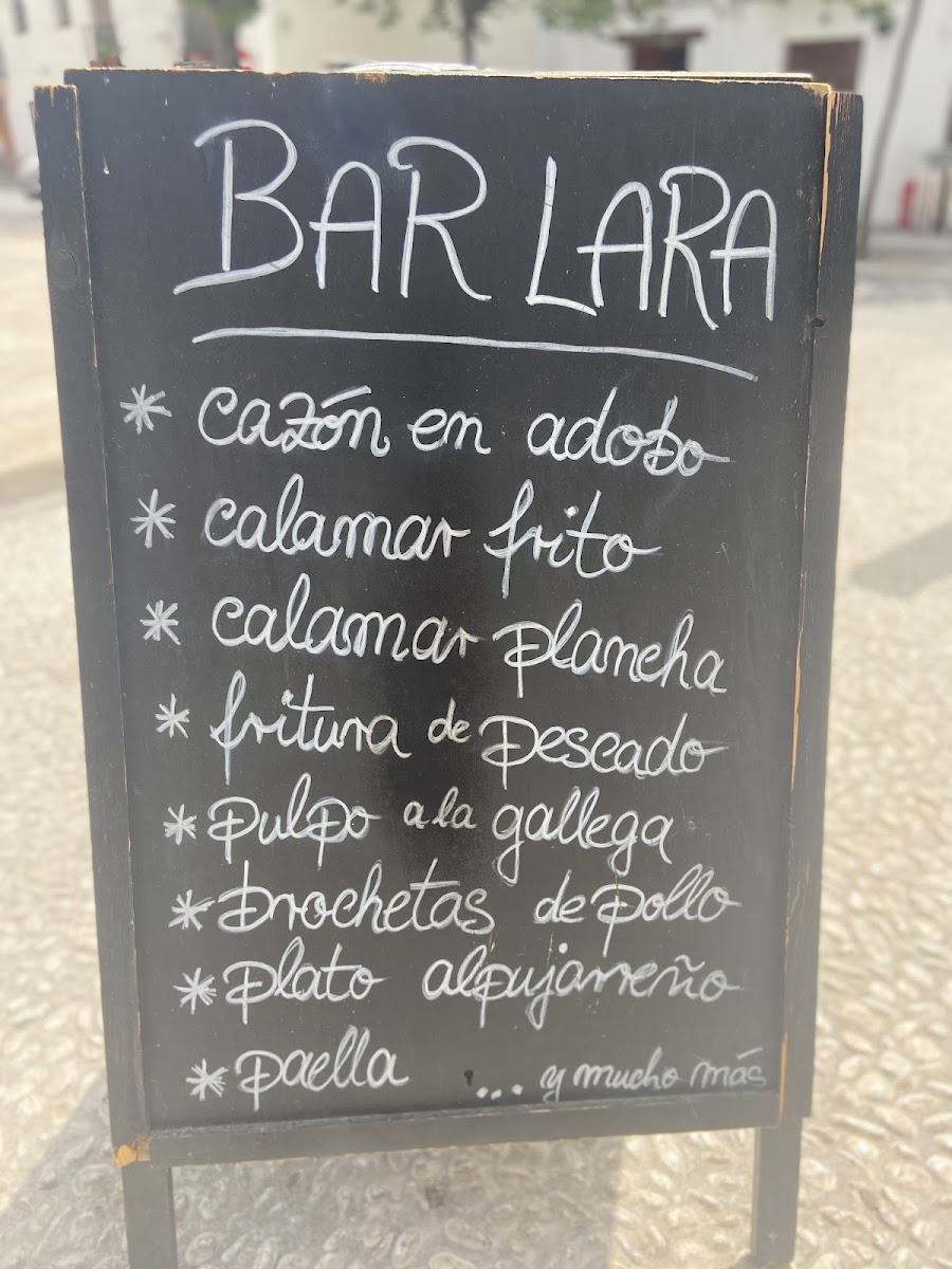 Bar Lara offers a menu that reflects the relaxed, inviting spirit of an Andalusian neighborhood bar. You’ll find simple yet satisfying tapas and dishes designed for sharing, encouraging a leisurely pace and convivial atmosphere. The menu features classic small bites like croquetas and pimientos de Padrón alongside traditional favorites such as tortilla de patatas and salmorejo with jamón and egg.
